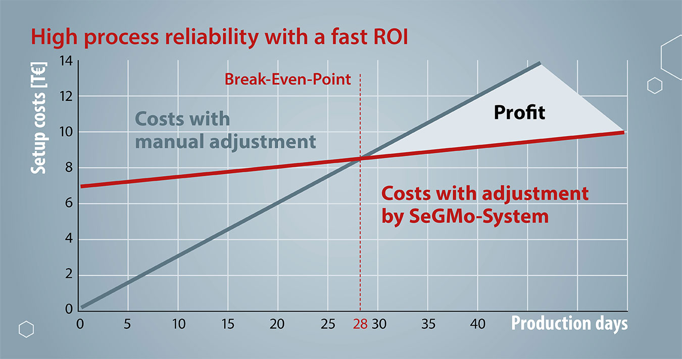 Besonders hilfreich bei der Entscheidung, die Maschinen zu automatisieren, ist unser Return-on-Investment-Kalkulator. Mit ihm können Sie anhand von wenigen Daten berechnen, nach wie vielen Produktionstagen sich die Investition in das SeGMo-System amortisiert.