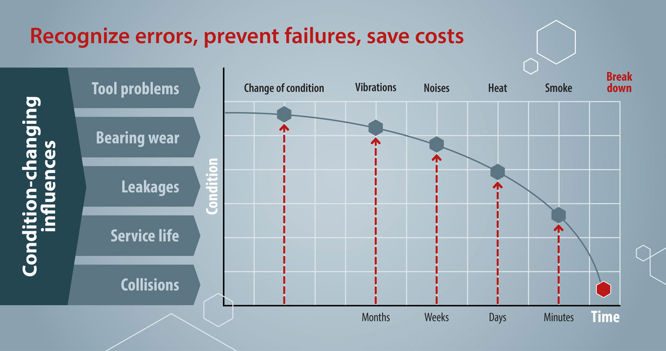 Il monitoraggio dei valori limite, la registrazione basata su eventi e gli indicatori di stato con tendenza supportano una manutenzione pianificabile e orientata alle condizioni e il collegamento diretto al sistema di controllo della macchina.